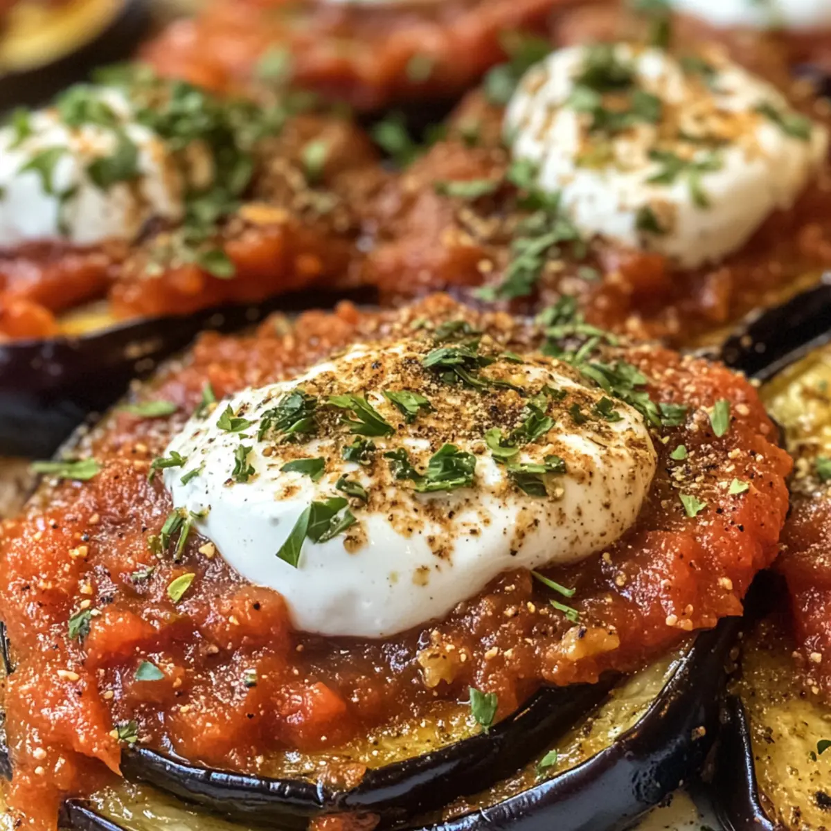 Nutty Flavor: Toasted pine nuts or walnuts can be sprinkled over the top for an added crunch and a nutty flavor that pairs beautifully with the savory eggplant.