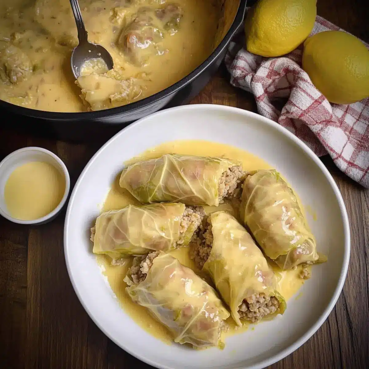 Delicious Stuffed Cabbage Rolls with Creamy Egg-Lemon Sauce