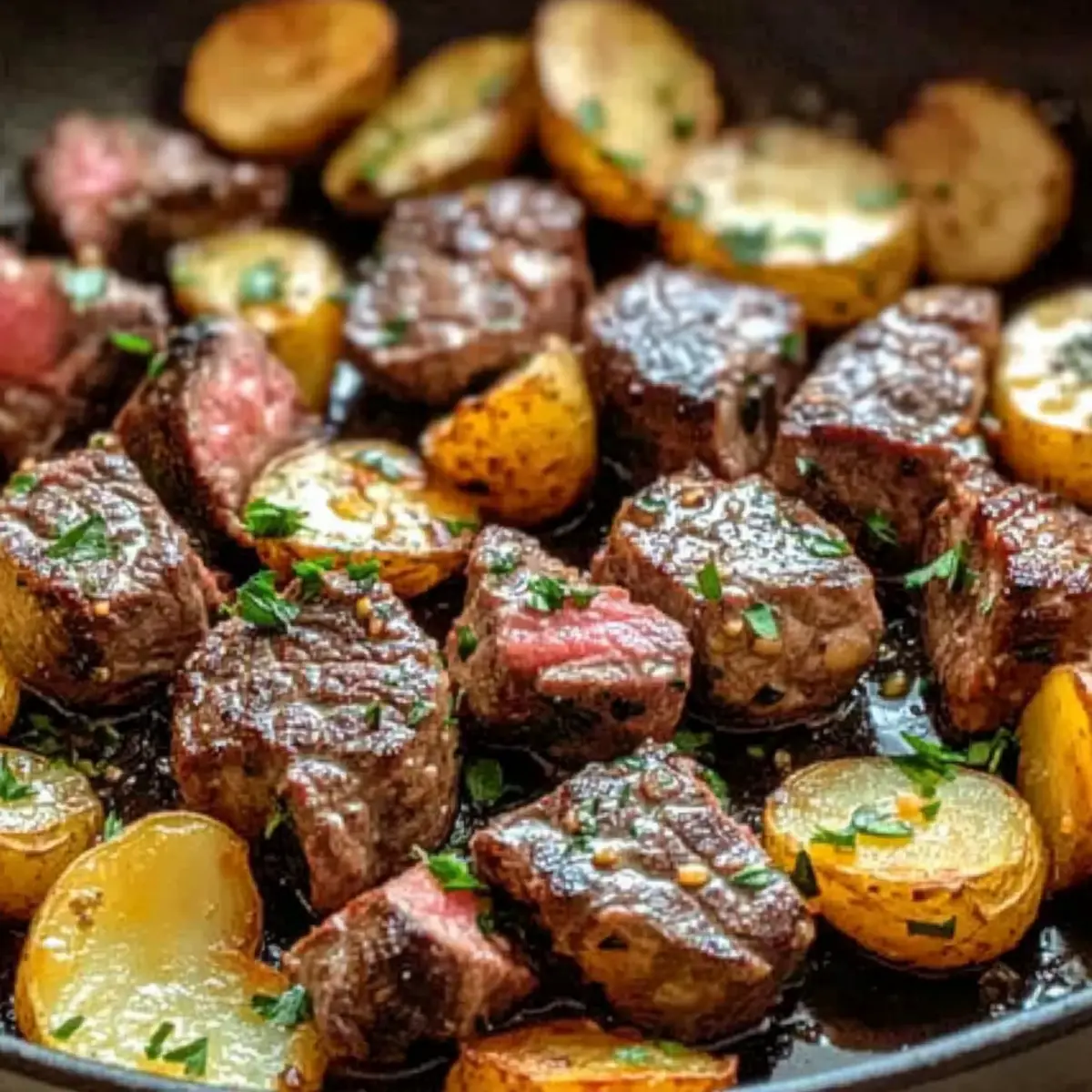 Savory Garlic Butter Steak Bites with Crispy Potatoes Delight