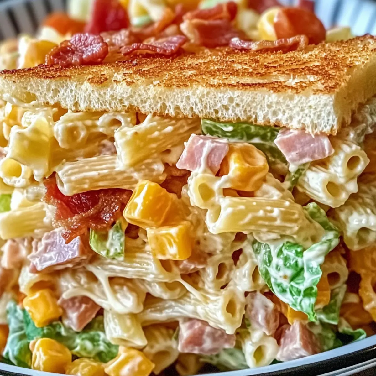 Crowd-Pleaser: This Club Sandwich Pasta Salad is perfect for gatherings, with flavors everyone will love.