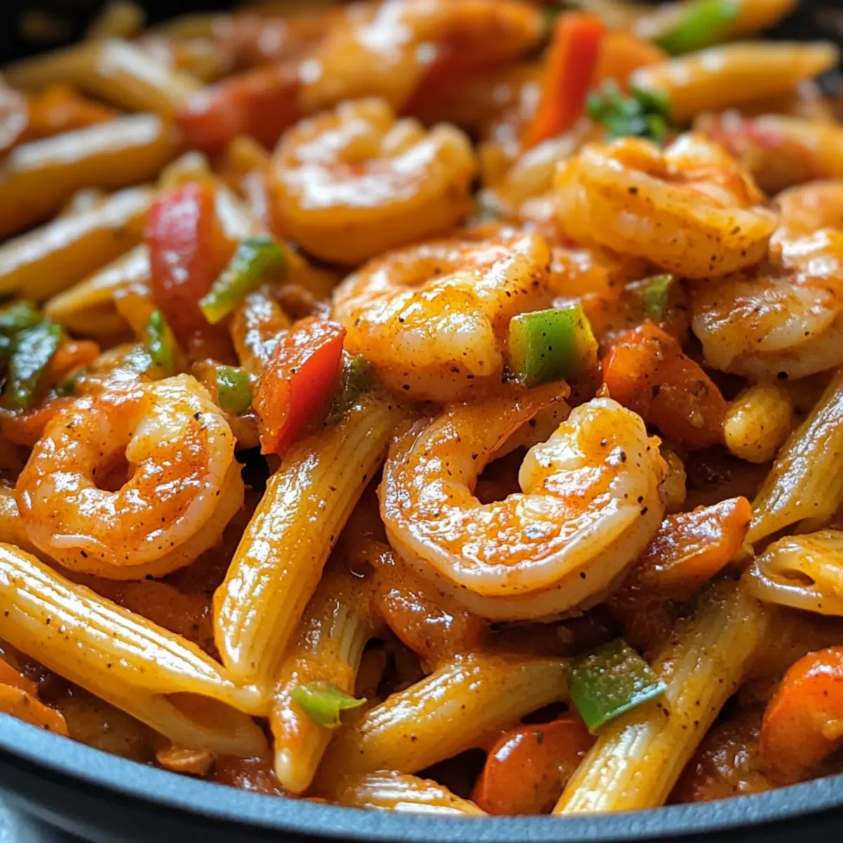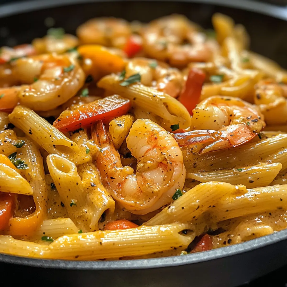 You can store your Creamy Jamaican Shrimp Rasta Pasta in an airtight container for up to 3 days. To preserve its creamy texture, reheat gently on the stove or in the microwave, adding a splash of cream or broth to revive the sauce.