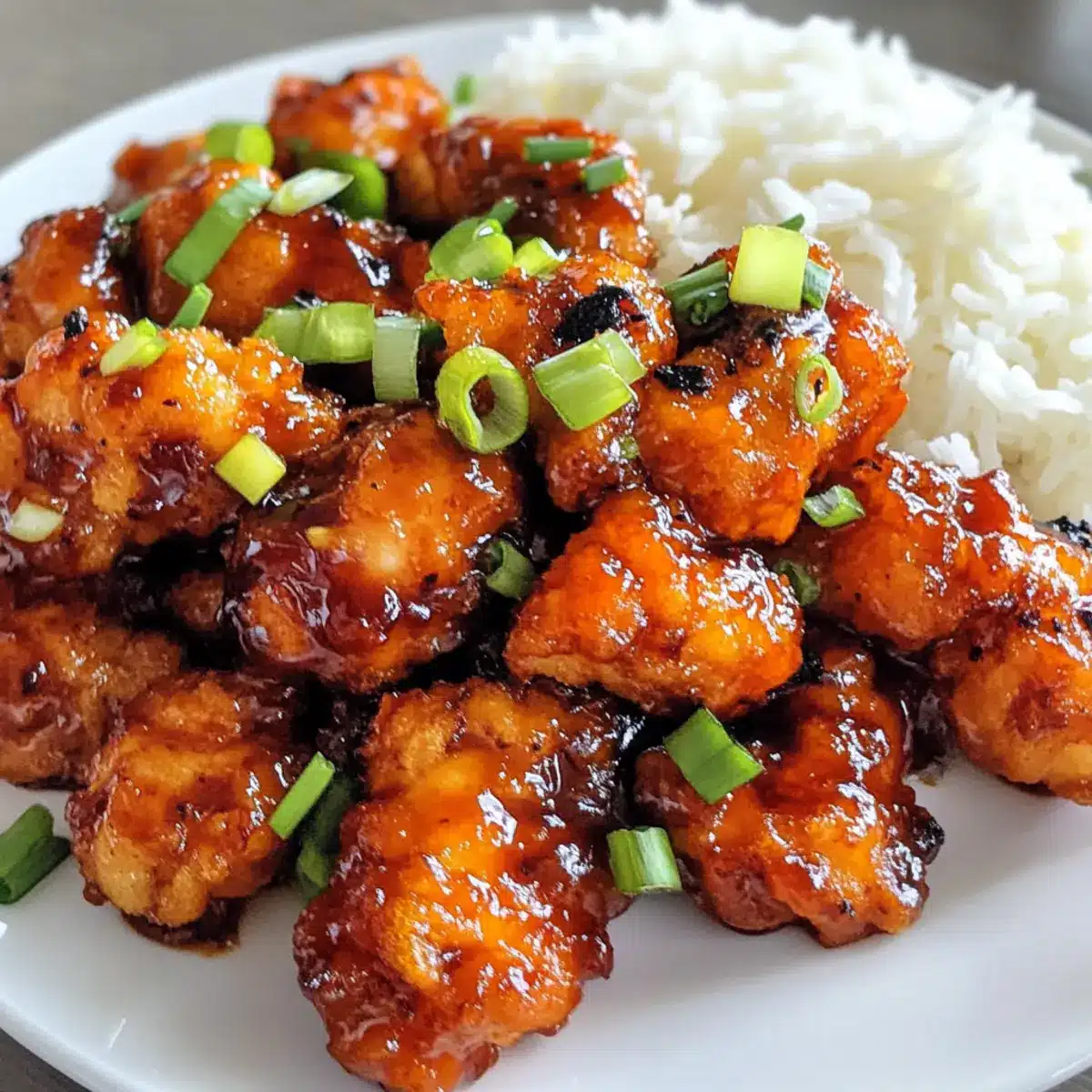 Steamed Jasmine Rice: A fragrant base that perfectly absorbs the sweet and spicy sauce, creating a blissful balance.
