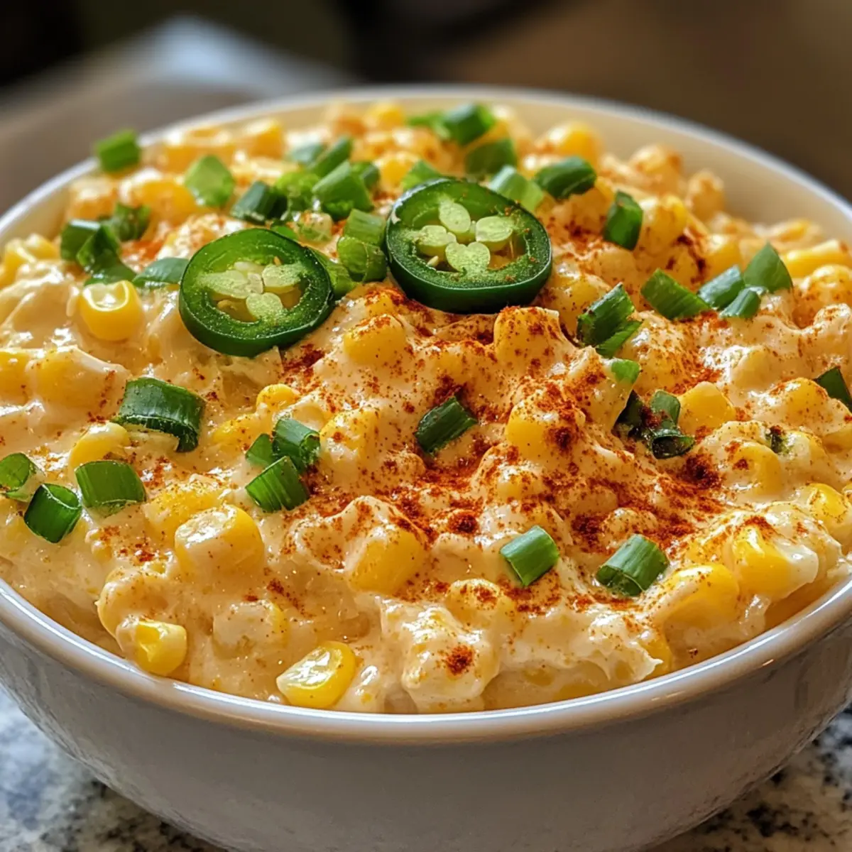 - Drain and rinse Mexican-style corn, then fold it into the creamy mixture. Add shredded cheddar cheese, sliced green onions, and chopped jalapeño. Stir for 1-2 minutes.
