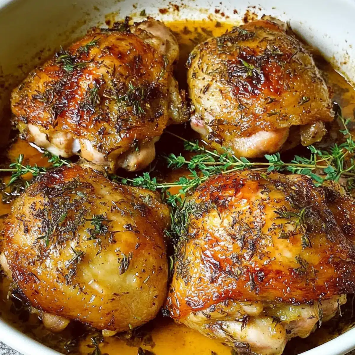 Sweet Honey Glaze: Drizzle honey over the chicken thighs during the last 10 minutes of baking for a sticky sweet finish that contrasts beautifully with the savory spices.