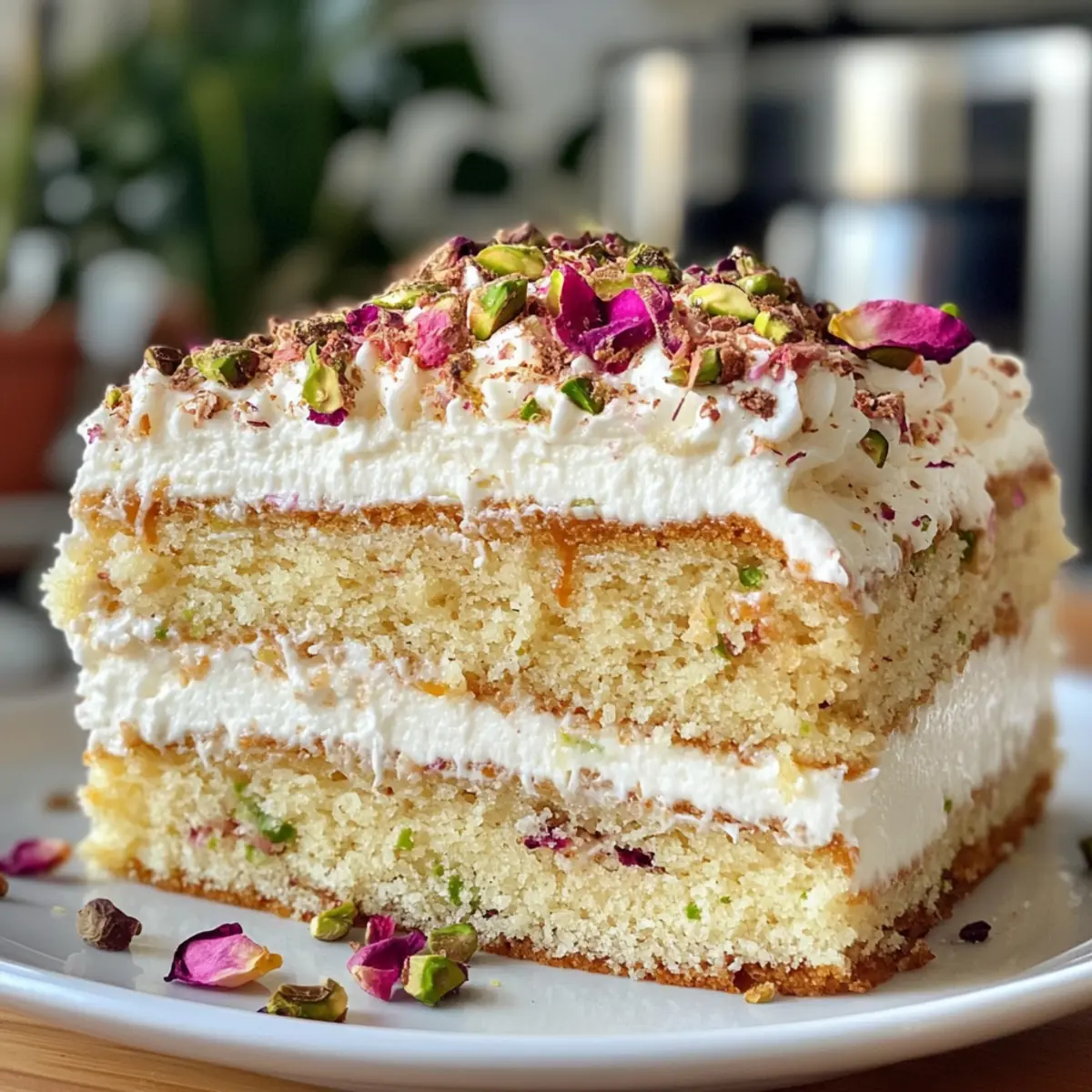 Presentation: If you plan to decorate your cake before serving, add fresh toppings like crushed pistachios and rose petals just before indulging to maintain their visual appeal.