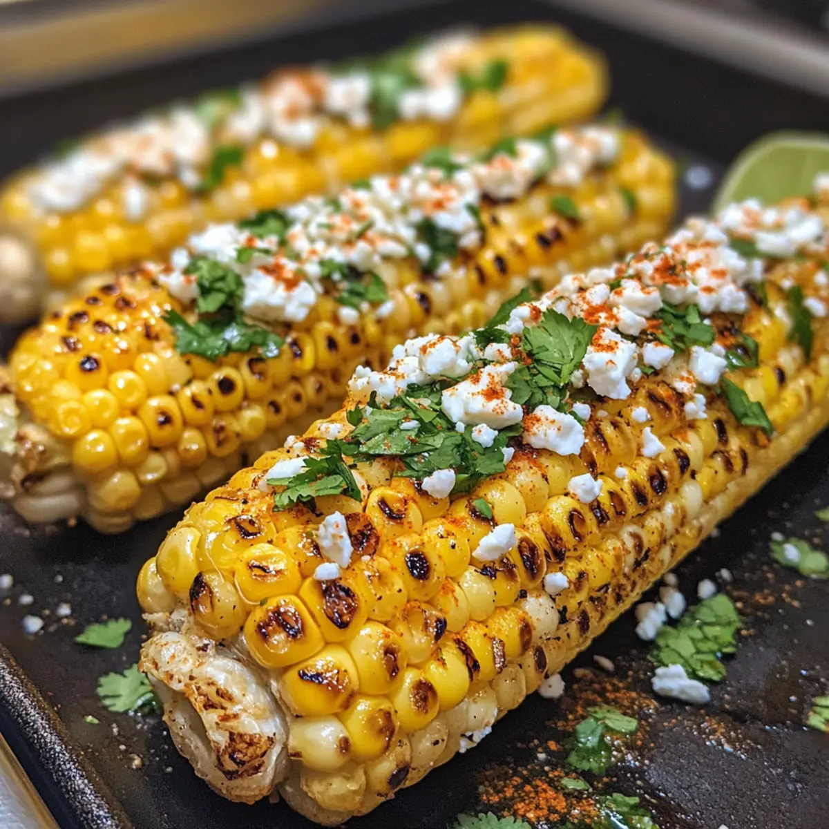 To elevate the dish, sprinkle crumbled feta or cotija cheese over the sauced corn. Then, add freshly chopped cilantro and a squeeze of lime juice on top for a burst of brightness. If you love heat, sprinkle with optional chipotle or chili powder, enhancing the spicy theme of your corn.