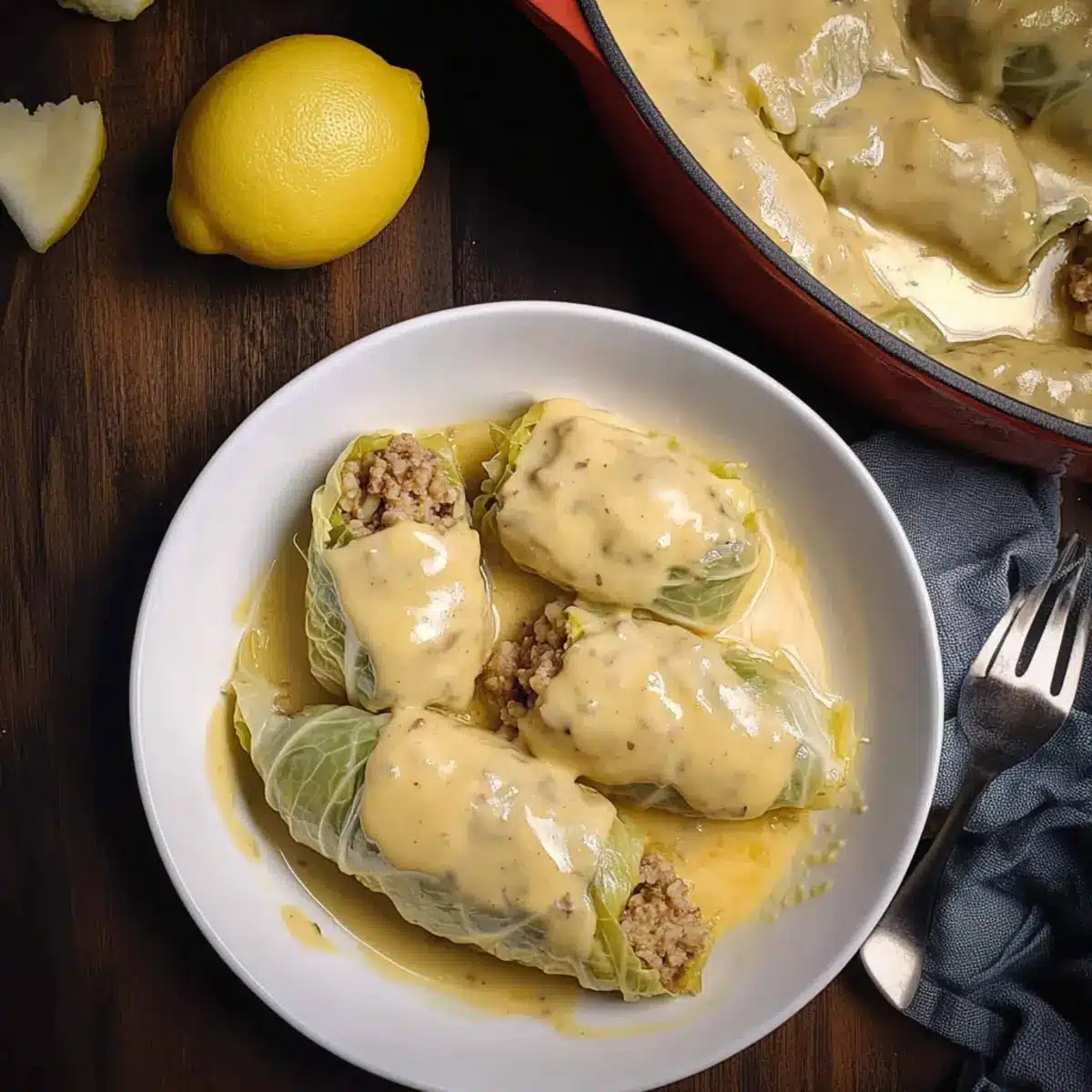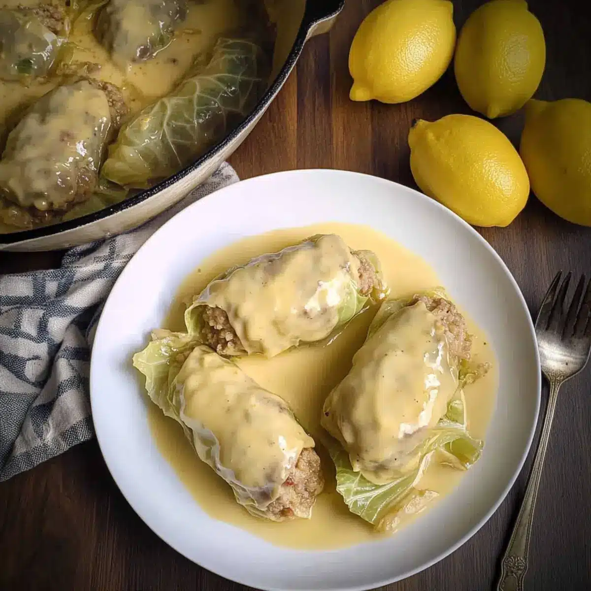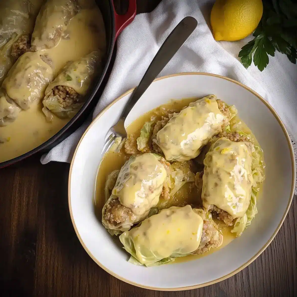 Delicious Stuffed Cabbage Rolls with Creamy Egg-Lemon Sauce