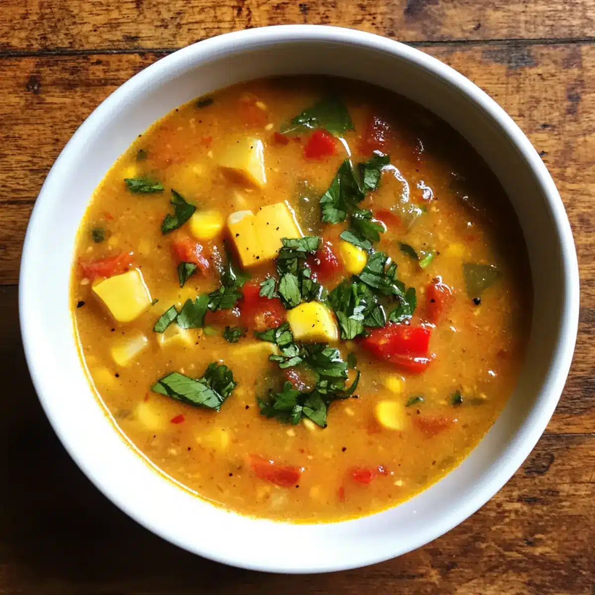 The aroma of spices wafting through sunlit kitchen windows can transport you straight to the vibrant streets of Trinidad, where bowls of steaming corn soup spark joy and conversation among family and friends. This Vegan Trinidad Corn Soup is not just a recipe; it embodies the essence of Caribbean culture, offering a hearty, gluten-free delight that warms the heart and soul. It’s a perfect one-pot meal, packed with protein-rich split peas and creamy coconut milk—ideal for those cozy evenings when comfort food calls. Plus, this dish is incredibly versatile, letting you tailor it to your taste with simple ingredient swaps. Are you ready to discover the joys of making this creamy, filling soup at home? Let’s dive into the flavors of Trinidad!