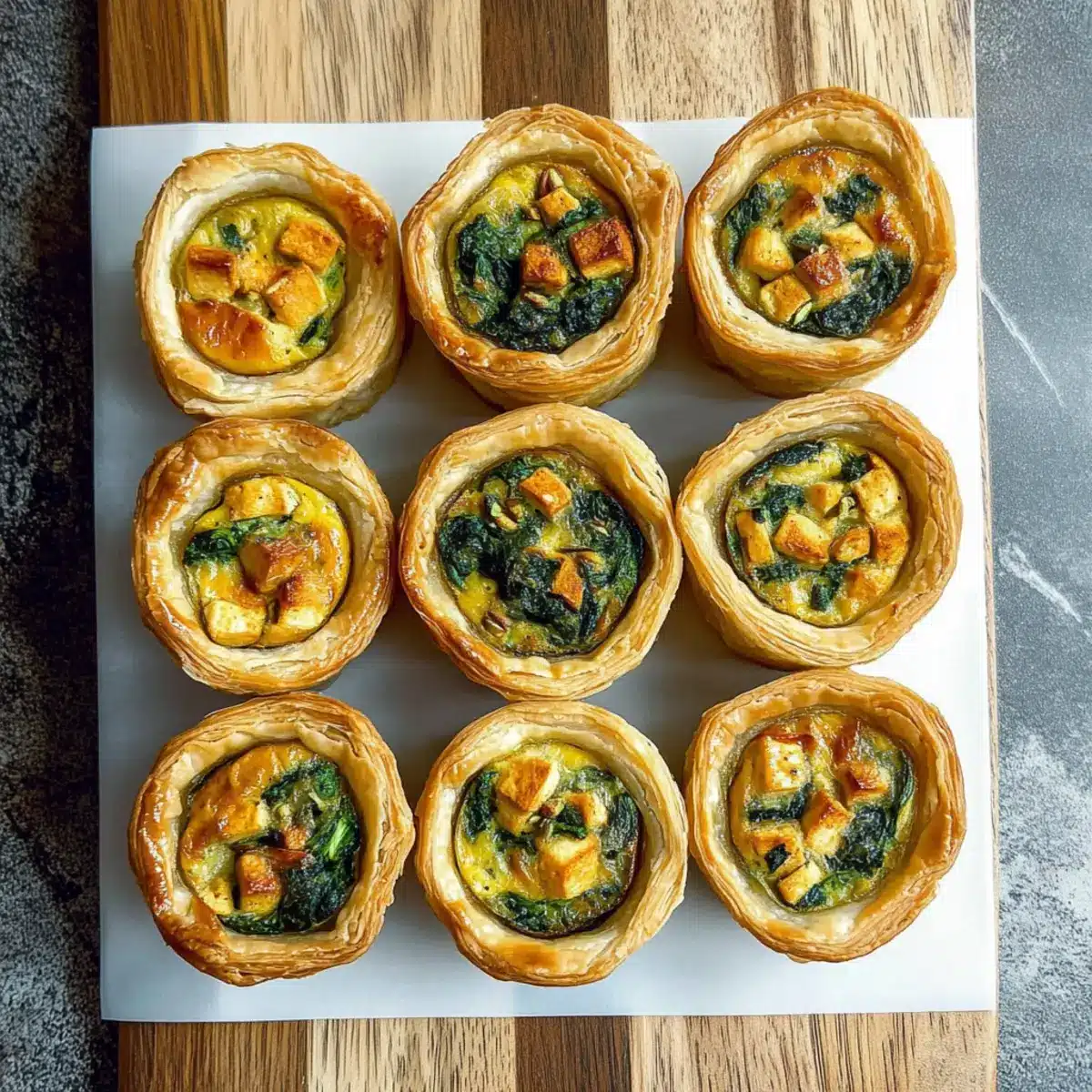 “Have you ever experienced that moment when you realize a snack can be both satisfying and nourishing?” I certainly have, and it led me to create these delightful Vegan Mini Quiches with Tofu, Spinach, and Pistachios. These little gems are not only a feast for the senses with their crispy puff pastry shell but also incredibly versatile, making them a crowd-pleaser for any gathering—or a tempting weekday breakfast. In just 35 minutes, you can whip up a savory treat that’s perfect for meal prepping, ensuring you have something delicious on hand while steering clear of fast food temptations. Whether enjoyed warm or cold, these quiches will have you wondering how you ever lived without them. Curious about the preparation? Let’s dive in!