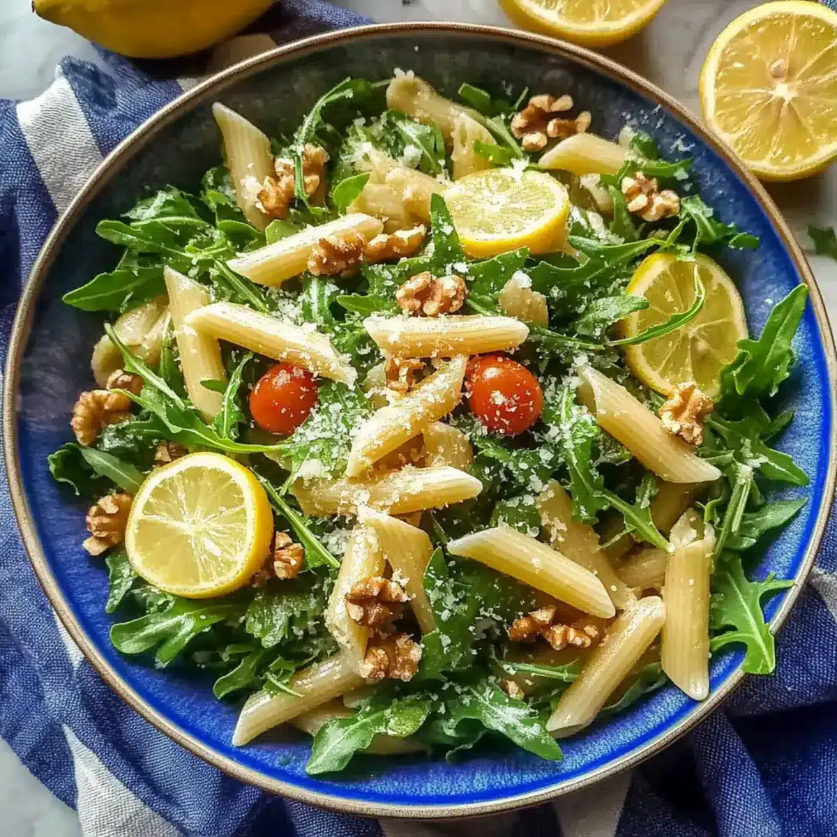 As I sliced into a perfectly ripe lemon this morning, the bright fragrance filled my kitchen with the promise of summer. That tangy, zesty aroma inspired me to whip up a dish that sings with freshness: Zesty Lemon Arugula Pasta Salad. This recipe is a celebration of quick and easy cooking, providing a wholesome meal that works for busy weeknights or lively outdoor gatherings. With vibrant arugula and crunchy walnuts dancing among the al dente pasta, it’s a delightful way to incorporate healthy ingredients into your everyday meals. Plus, it’s a make-ahead wonder, retaining its bright flavors even after a day in the fridge. Are you ready to bring a burst of sunshine to your table? Let’s dive into this invigorating salad!